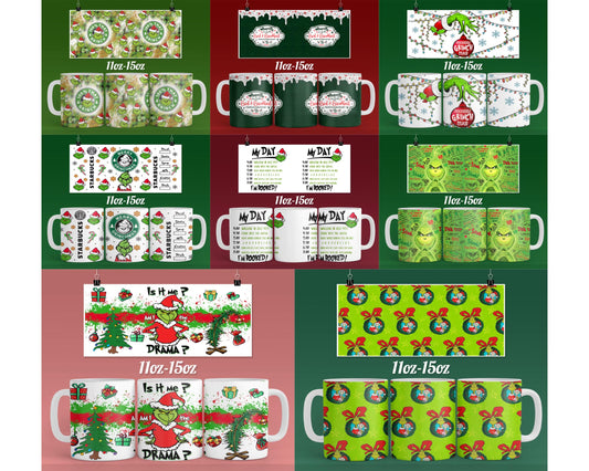 25+ file Grinch MUG TEMPLATE PNG, Christmas coffee bundle PNG, for Cricut, Silhouette, digital download, file cut